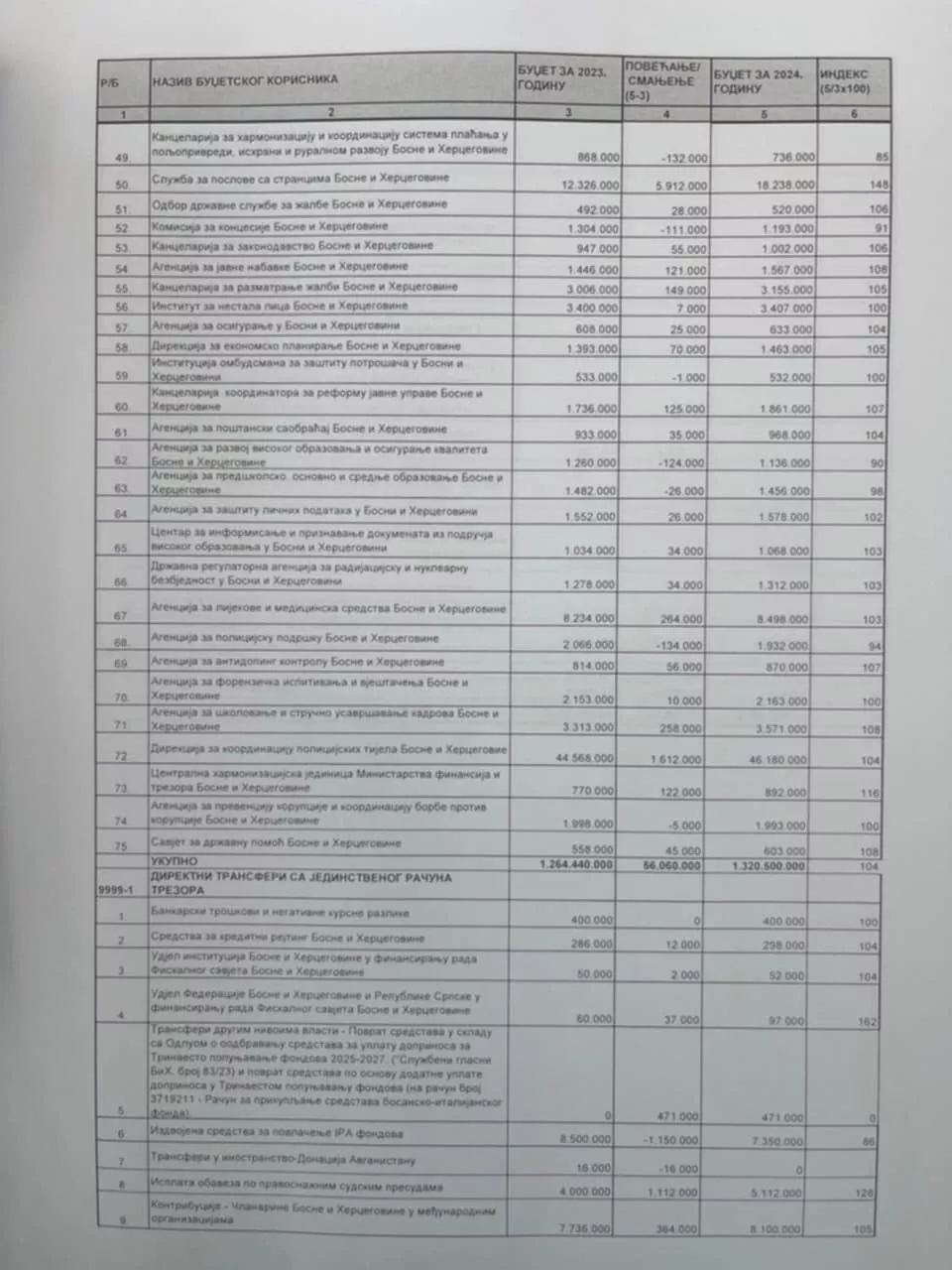 Prema Nacrtu koji je pipremilo Ministarstvo finansija i trezora na čijem čelu je SNSD-ov Srđan Amidžić neke institucije i ministarstva imaju umanjen budžet u odnosu na 2023. godinu, a neke značajno uvećan.