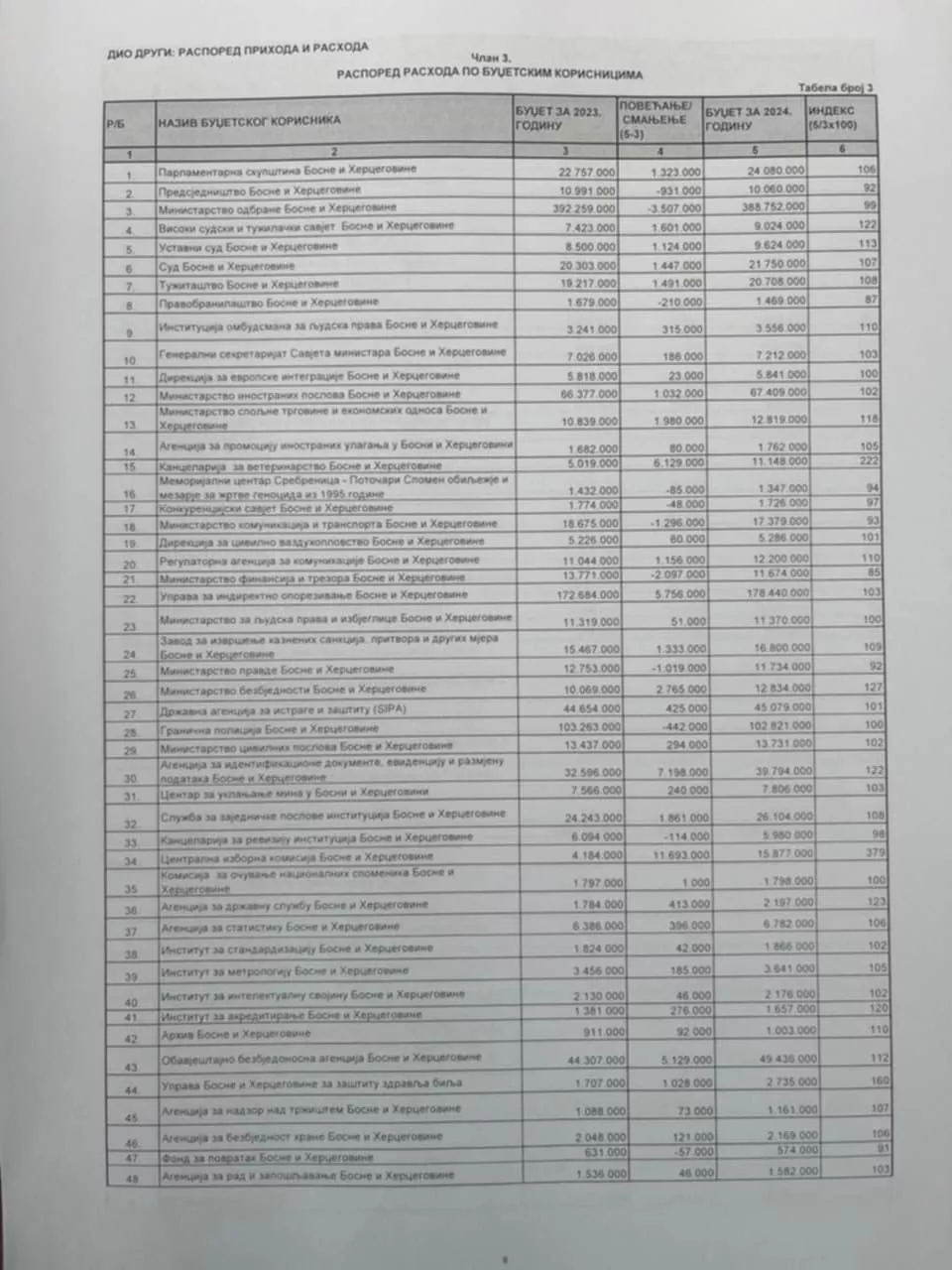 Smanjen budžet Ministarstvu odbrane, Predsjedništvu BiH, Memorijalnom centru Srebrenica, a povećan za MVP, SPS, UIO, RAK