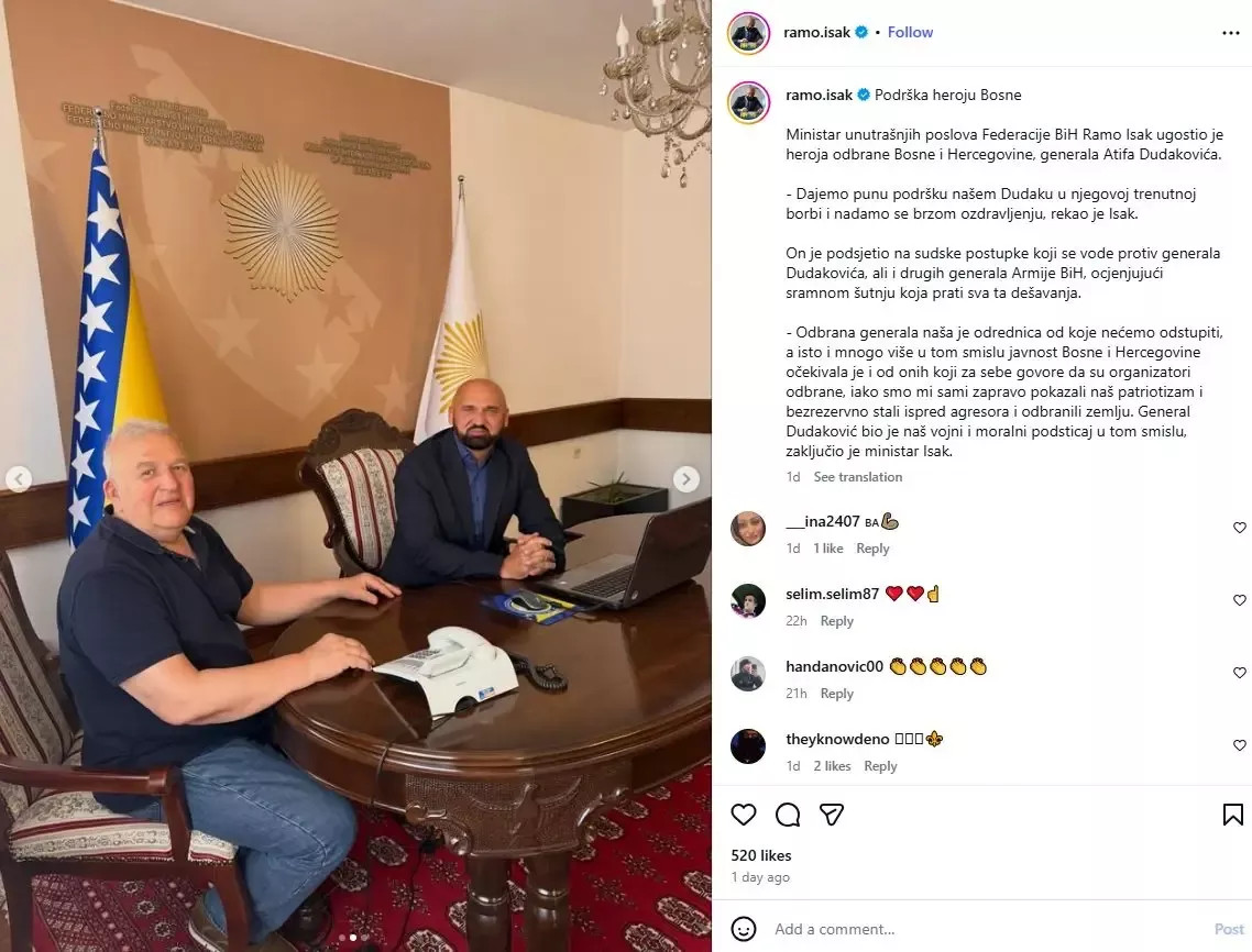 Ramo Isak objavio fotografije stare dvije godine: Crnalić demantuje da je Atif Dudaković ove sedmice posjetio ministra