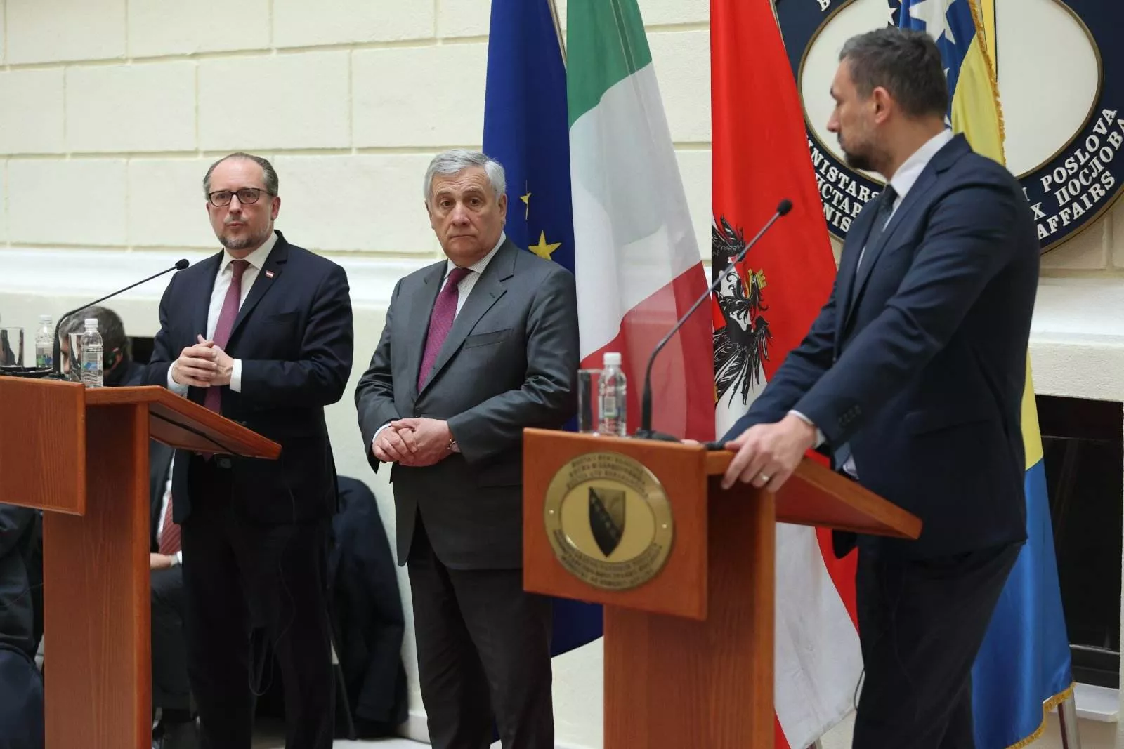 (Patria) - Ministri vanjskih poslova Italije i Austrije Antonio Tajani i Alexander Schallenberg danas borave u posjeti BiH. U Ministarstvu vanjskih poslova BiH održali su sastanak sa ministrom Elmedinom Konakovićem.