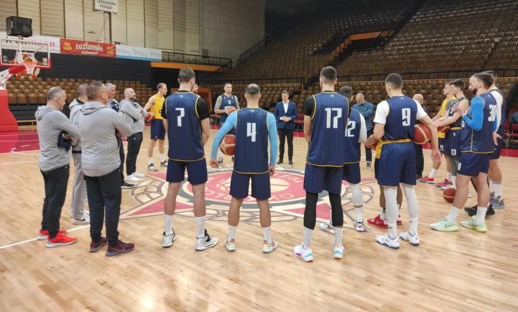 SARAJEVO, (Patria) - Košarkaški reprezentativci Bosne i Hercegovine sinoć su u tuzlanskom Mejdanu obavili prvi trening u sklopu priprema za posljednje utakmice kvalifikacija za Svjetsko prvenstvo.