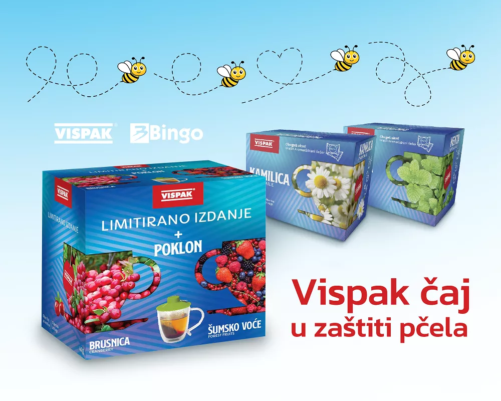 Kupovinom limitiranog izdanja ili bilo koja dva okusa Vispak čaja, potrošači širom BiH imaju priliku učestvovati u projektu u kojem ćemo donirati 5% iznosa Udruženjima pčelara u Bosni i Hercegovini. Projekat će trajati do 15. marta, te u navedenom periodu u različitim Bingo objektima kupci mogu pronaći limitirana izdanja Vispak čaja. U sklopu projekta biće organizovana tri eventa u Bingo objektima sa bh. influenserima kako bi se jačao glas o očuvanju i zaštiti pčela", navodi Lejla Mehica Kadrić, brend menadžer kompanije Vispak.