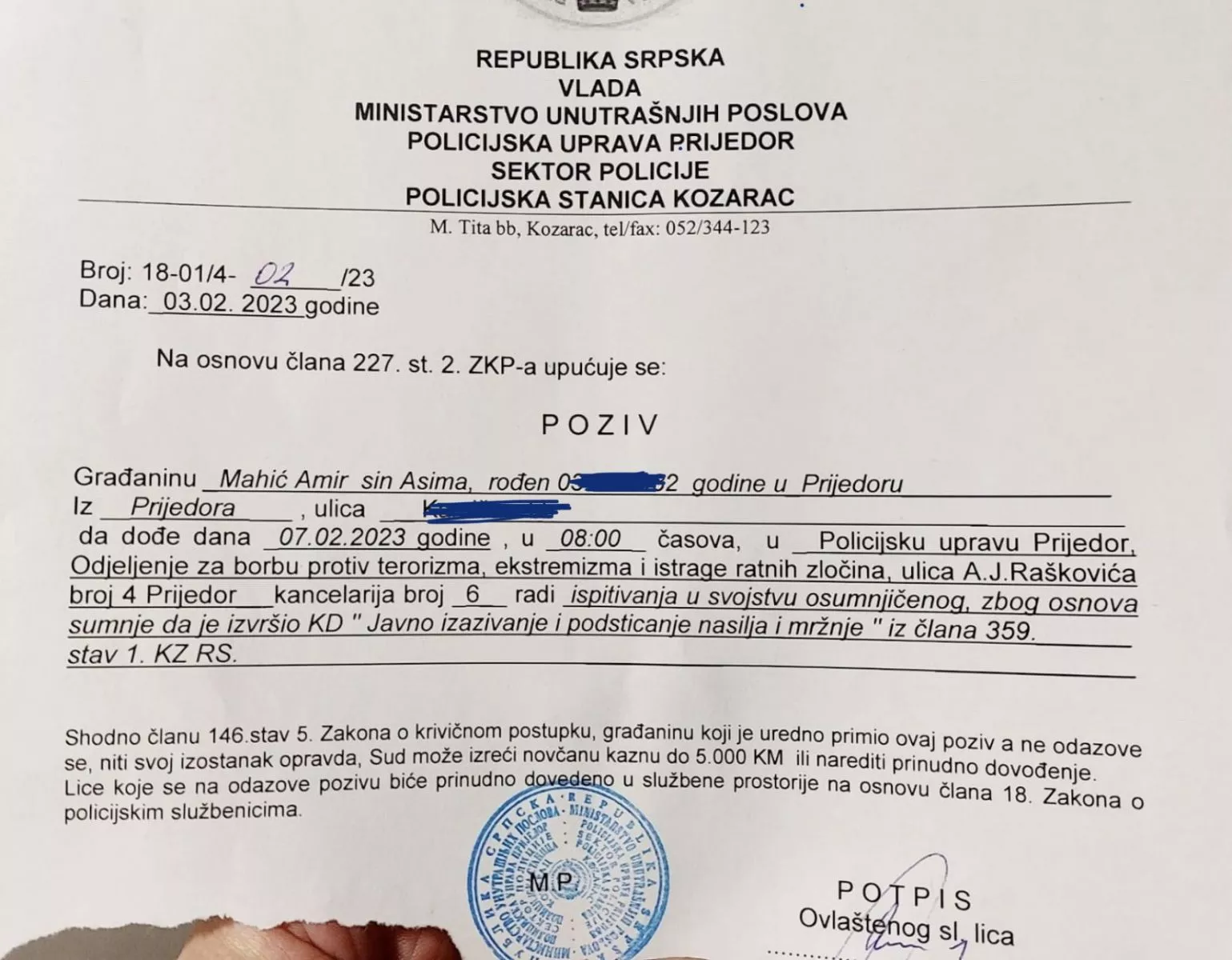 Nedopustiv je selektivan, diskriminatoran pristup MUP-a entiteta RS prema jednoj osobi, u ovom slučaju službeniku Islamske zajednice u BiH, dok su primjeri govora mržnje i negiranja genocida i veličanja presuđenih ratnih zločinaca kontinuirana, svakodnevna pojava lidera političke pozicije i opozicije ovog bosanskohercegovačkog entiteta, protiv kojih je IGK podnio Tužilaštvu BiH krivične prijave.