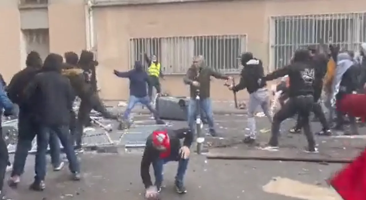 Pojedini učesnici su bacali klupe, kamenice i kante za smeće i sukobili se sa policijom, nakon čega je policija ispalila suzavac.