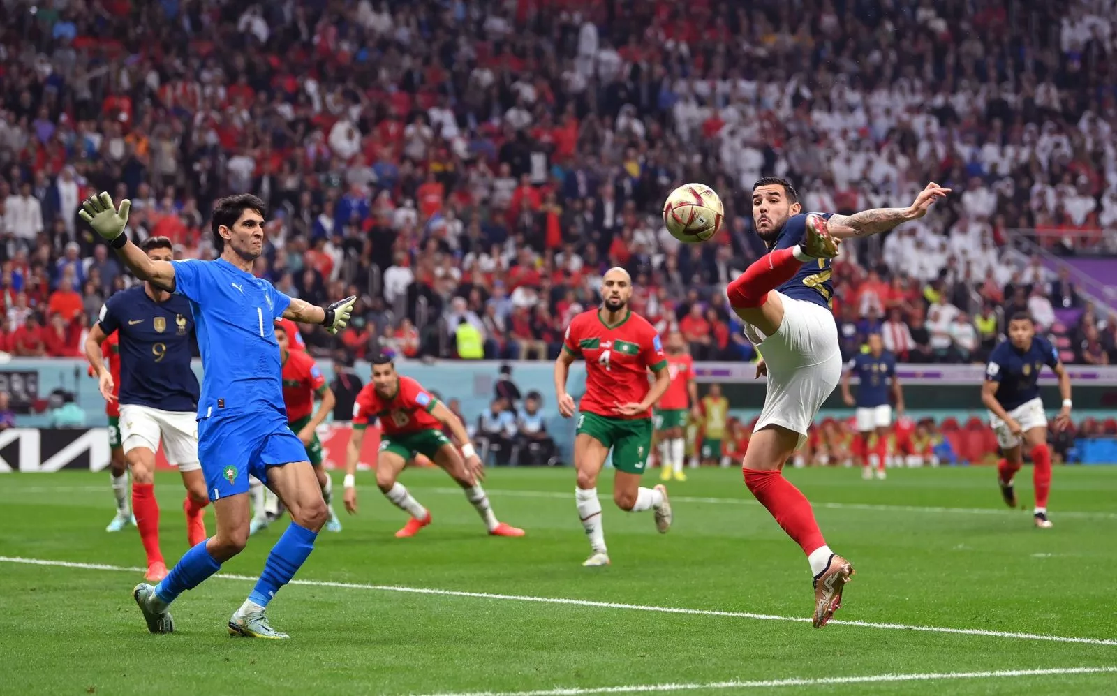 Tek što je počeo meč došao je i prvi pogodak. Gužva je bila pred golom Marokanaca, Hernandez se najbolje snašao nakon što je izblokiran pokušaj Mbappea i Francuzi su mogli da slave.
