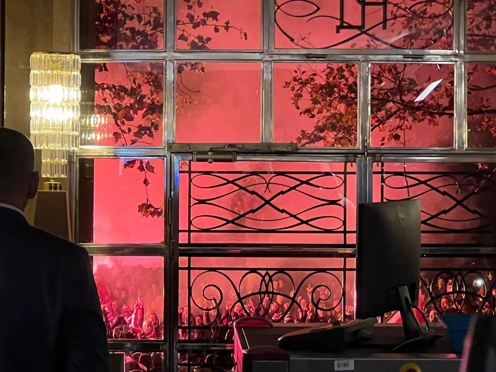 Slomljeno staklo na vratima Skupštine.