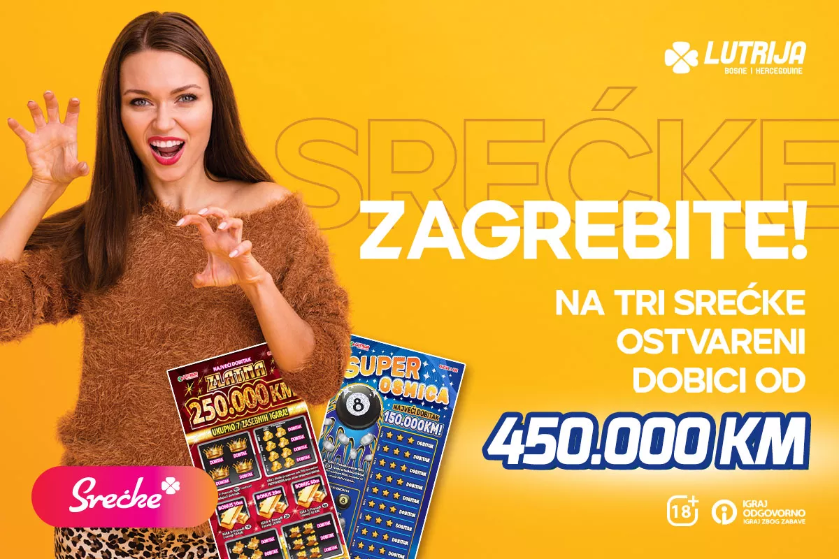 Na navedenim srećkama u opticaju su i dalje maksimalni dobici od 250.000,00 KM i 150.000,00 KM.