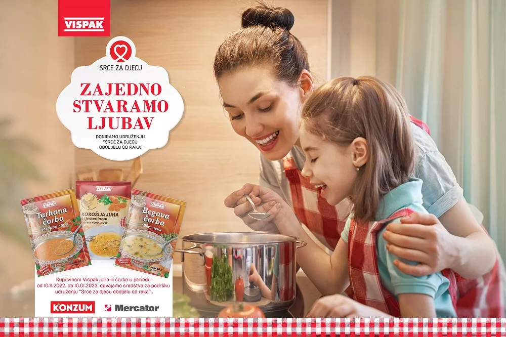 Ovim humanim projektom u kojem mogu učestvovati svi vjerni potrošači, Vispak, Konzum i Mercator žele donirati sredstva najugroženijoj kategoriji u BiH, a to su djeca oboljela od raka. Kupovinom Vispak juhe ili čorbe u periodu od 10.11.2022. do 10.01.2023. odvajat će se sredstva za podršku Udruženju, a iz ovih kompanija navode kako su sigurni da će uspjeti opravdati slogan kampanje „Zajedno stvaramo ljubav“.