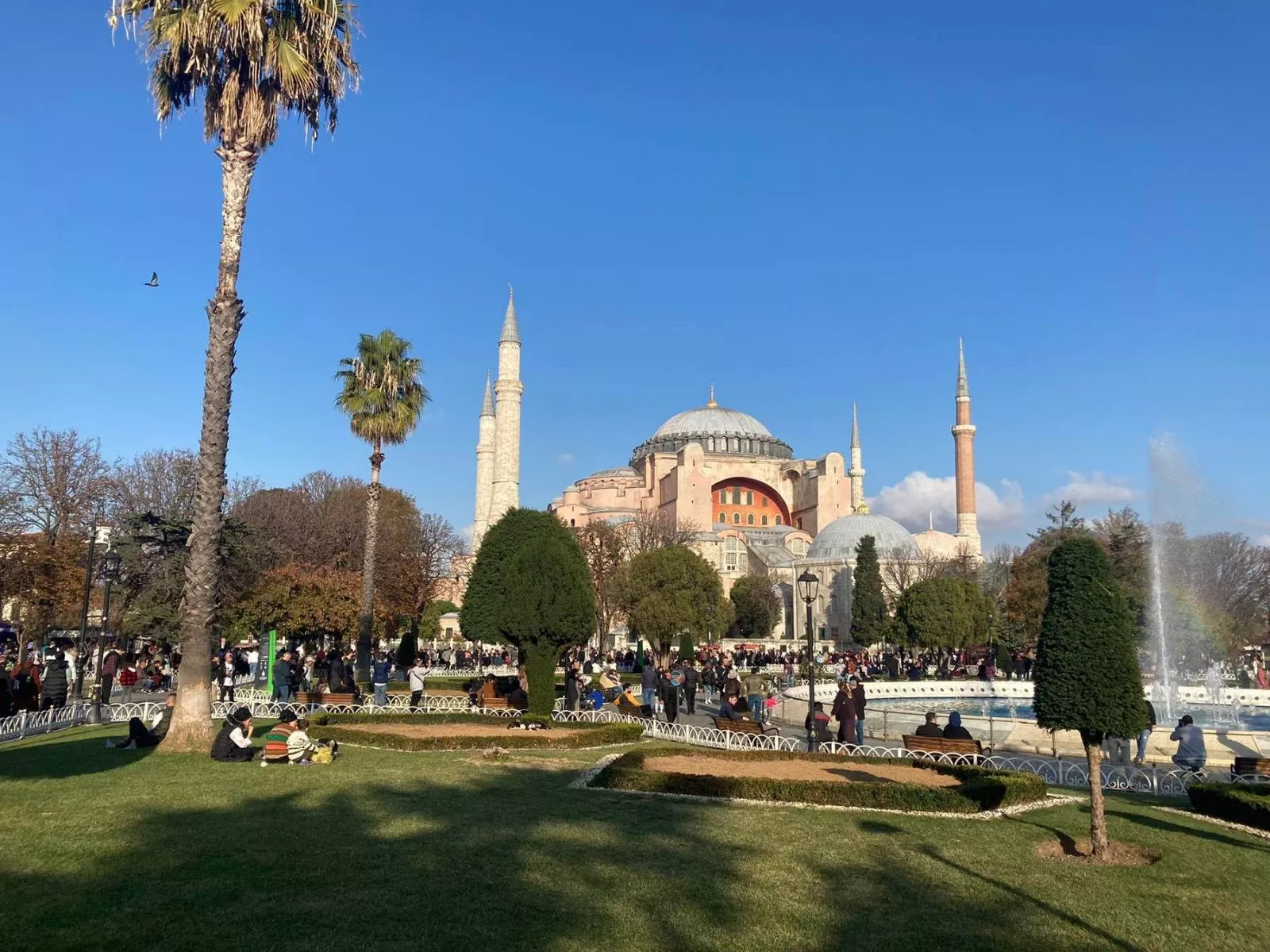 Obezbijeđen transfer čekao je ispred aerodroma i istanbulska avantura mogla je početi. Nisam ni slutila koliko sam u pravu. Aerodrom je udaljen oko 40 kilometara od starog dijela Sultanahmeta gdje sam bila smještena. Dolazak u hotel rano poslijepodne. Brzo spremanje i obilazak znamenitosti. S obzirom da je hotel u neposrednoj blizini Sultan-Ahmetove džamije (Plava džamija) i Aja Sofije prvo zaustavljanje bilo je upravo tu. Bila je to prilika da prvi put probam đevrek. Na prvi pogled reklo bi se obično suho pecivo, ali uz dodatak sira, a uvjerit ću se da Turci imaju odlične sireve, masline, i druge gastronomske đakonije, bio je to „prvi obrok“ na tlu Turske. Hiljade ljudi okupiralo je kompleks džamija, ali svi strpljivo čekaju red da uđu.