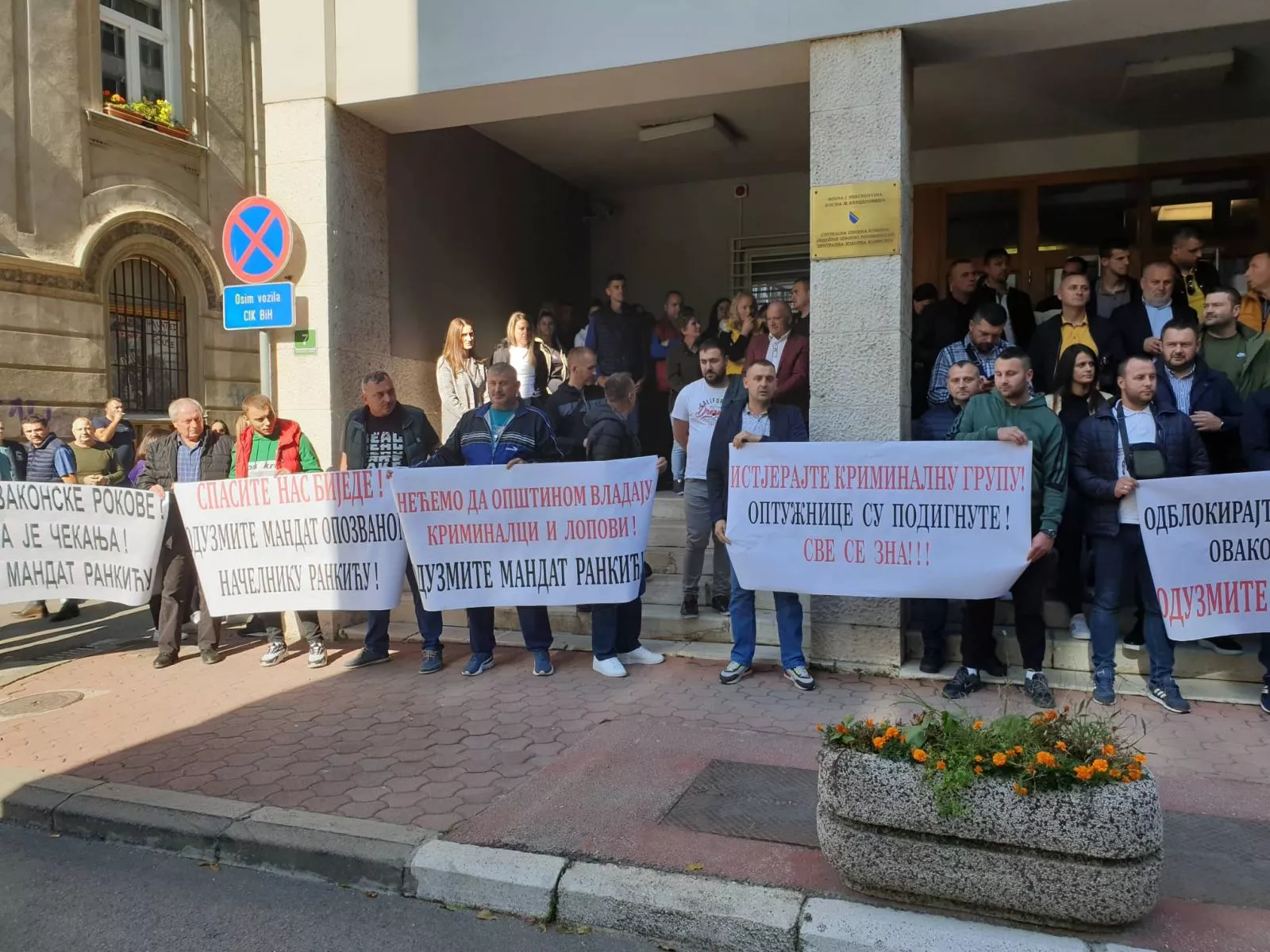 (Patria) - Nekoliko desetina osoba protestuje ispred Centralne izborne komisije. Većina okupljenih je iz Bratunca, a traže da se oduzme mandat opozvanom načelniku opštine Bratunac, Srđanu Rankiću.