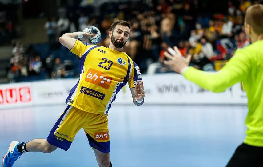 Hamidović i Hadžiomerović su smanjili distancu na 13:8, a mogao je Panić spustiti na četiri gola razlike, ali sjajni slovenački golman Klemen Ferlin odbranio je dva njegova uzastopna pokušaja. No, to je uspjelo Dini Hamidoviću, koji trese mrežu za 13:9 na dvije minute prije kraja poluvremena.