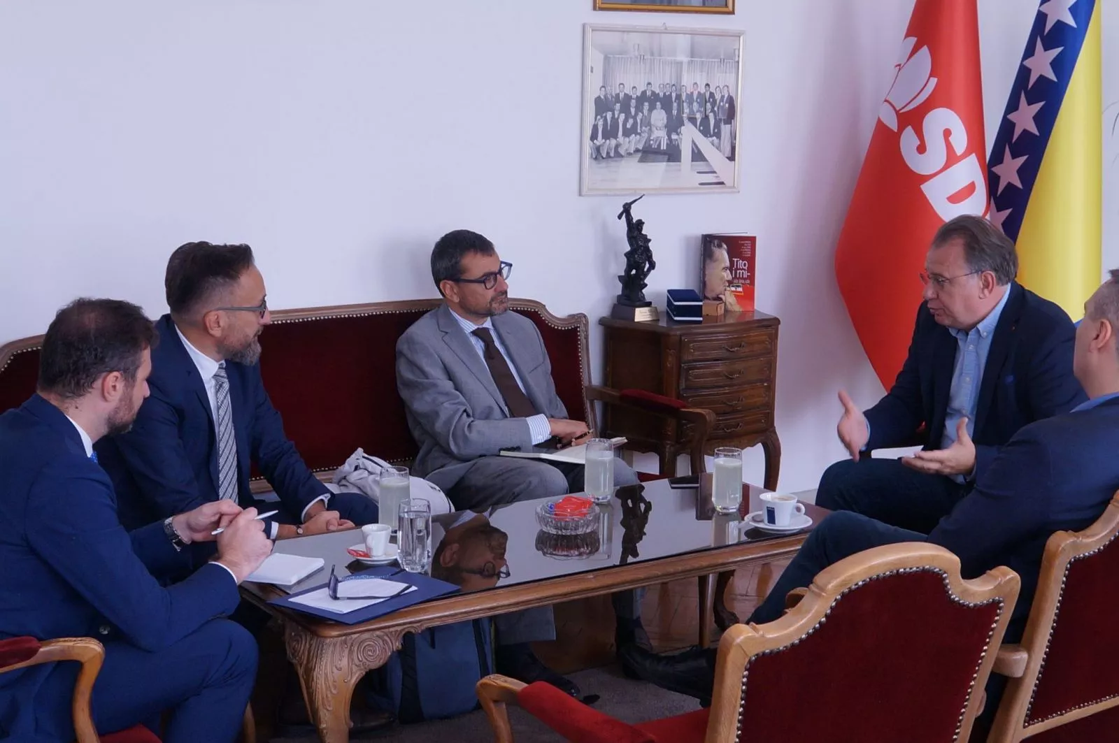 Na sastanku je bilo riječi i o stavovima i pozicijama SDP BiH u vezi formiranja vlasti na svim nivoima. Predsjednik SDP BiH Nermin Nikšić se zahvalio na posjeti i podršci Republike Italije, te naglasio kako će SDP insistirati da vlast sa potencijalnim partnerima bude formirana na osnovu programskih principa, a kao jedan od temeljnih principa će biti jača borba protiv korupcije i provedba seta antikorupcijskih zakona u Federaciji BiH.