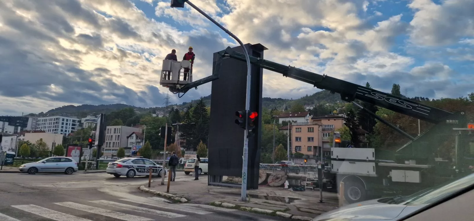 Naime, kako smo već ranije pisali jutros je na licu mjesta zatečeno izvođenje radova na postavljanju reklamne konstrukcije dimenzija 2,60x7,0 metara ankerisane anker pločama i sa 2x8 anker vijaka u temelje. Investitor radova je firma KARPAS AMBALAŽA d.o.o. Banjaluka. Na licu mjesta nisu posjedovali pravosnažno odobrenje izdato od strane Općine Centar, nego su izjavili da posjeduju odobrenje od Gradske uprave Sarajevo kao i priključak za elektroinstalacije.