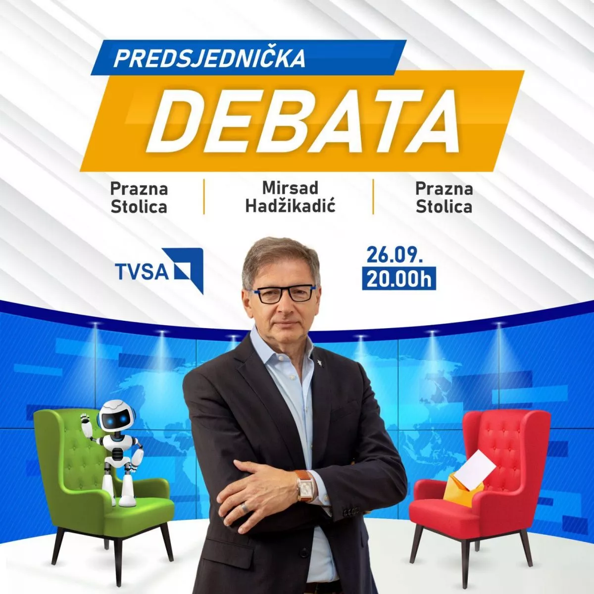 "Maloprije sam dobio poziv sa TVSA - debata kandidata za člana Predsjedništva BiH, koja se trebala snimati u 13:00 sati, a emitovati večeras u 20:00 sati, je otkazana. Razlog: Izetbegović rekao da neće doći, a Bećirović nije odgovorio na poziv.