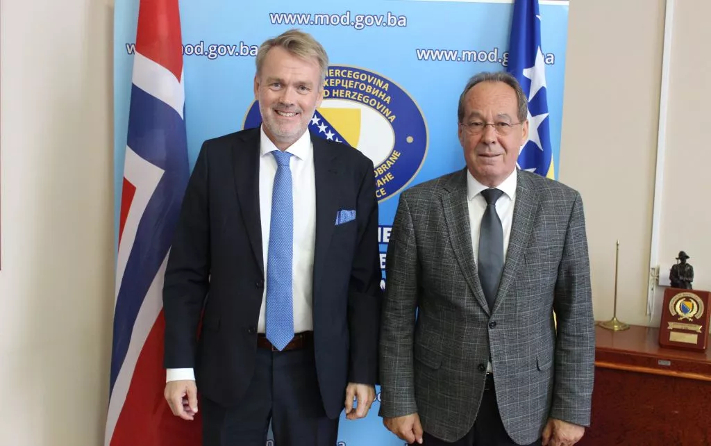 SARAJEVO, (Patria) - Ministar odbrane Bosne i Hercegovine Sifet Podžić primio je u ponedjeljak 19. rujna 2022. godine u službeni posjet ambasadora Kraljevine Norveške u BiH Oleva Reinertsena.