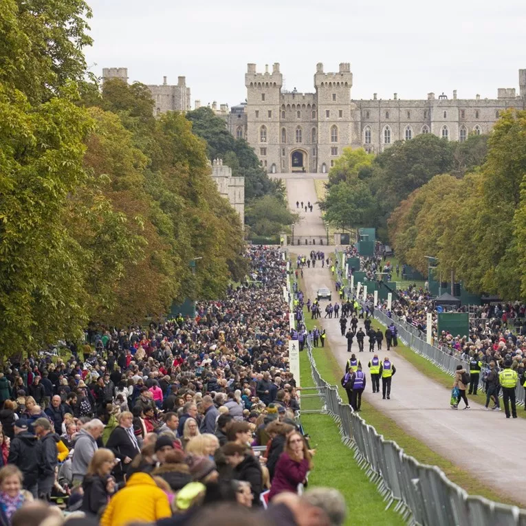 Na pet kilometara dugom prilazu dvorcu Windsor okupile su se hiljade ljudi. Prolazak povorke s lijesom kraljice ovim putem očekuje se tek u popodnevnim satima.