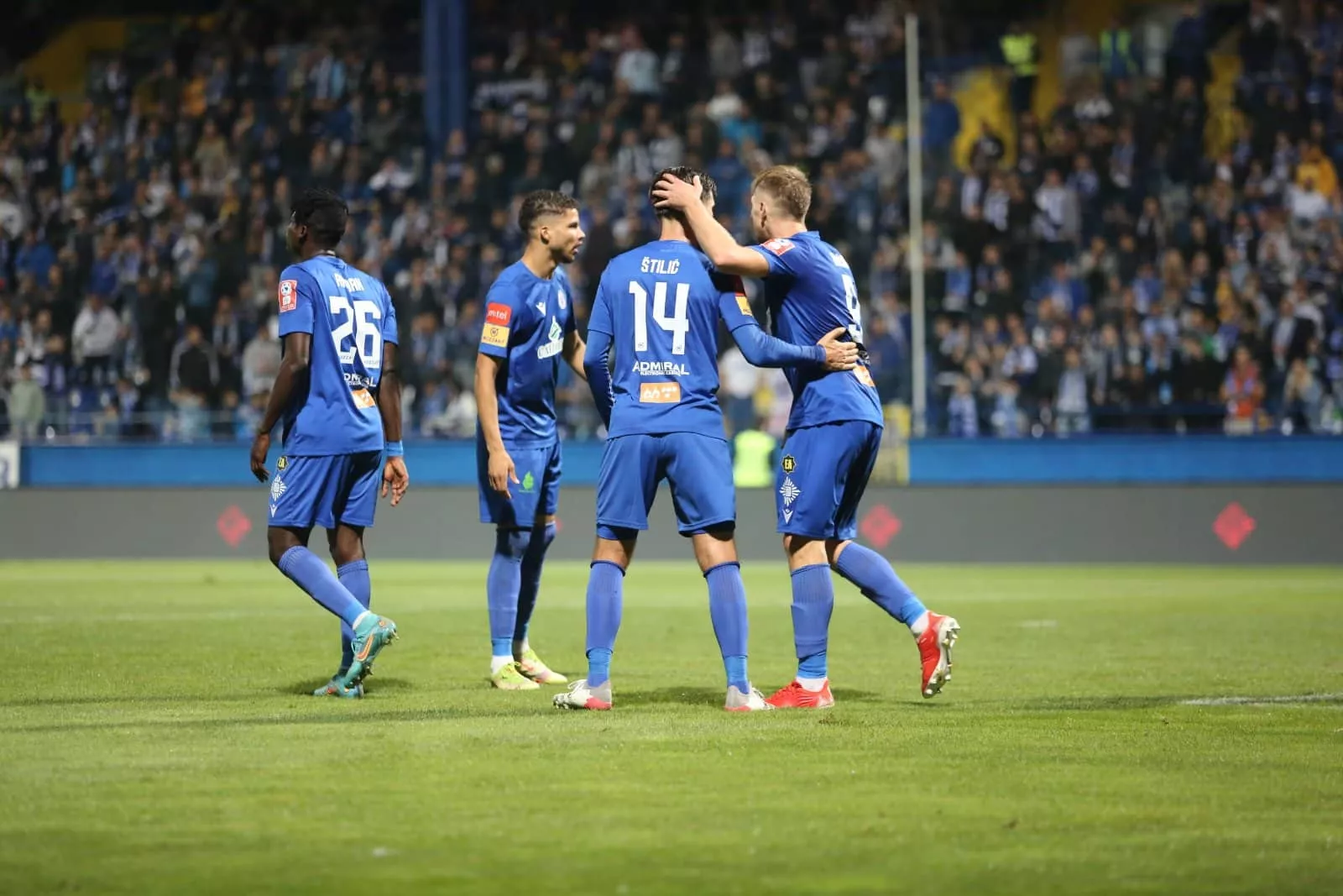 Santos je oboren na nekih osamnaest metara od gola, raspoloženi Štilić je obacio loptu, a Armin Hodžić glavom je zahtvatio loptu i pogodio mrežu Sloge i vodstvo Plavih od 38. minute.