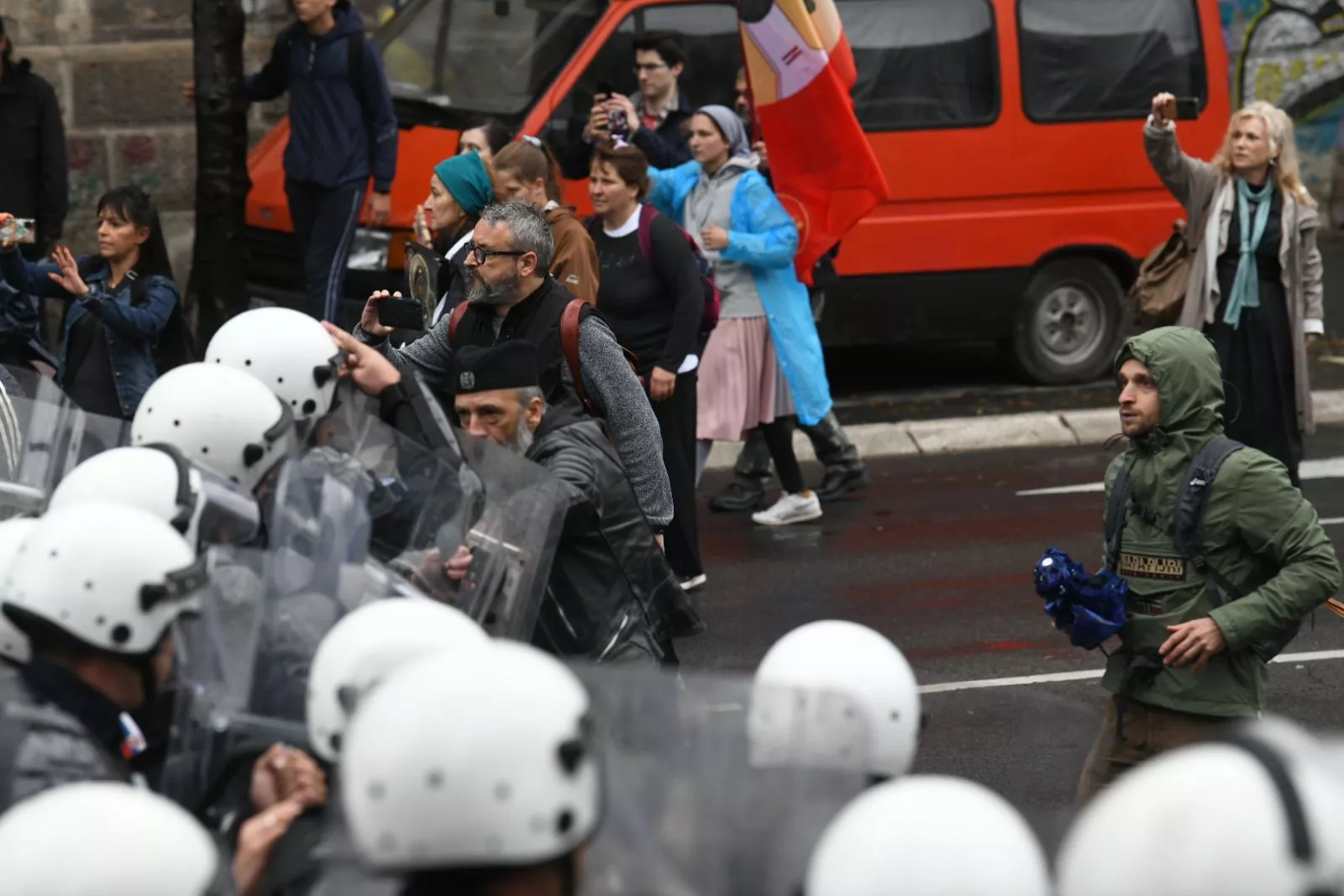 Do sukoba protivnika Prajda i policajaca došlo je u blizini Skupštine. Kako javlja reporterka Nova.rs raščinjeni monah Antonije je najpre izdvojen iz mase, a potom uveden u policijsku maricu.
