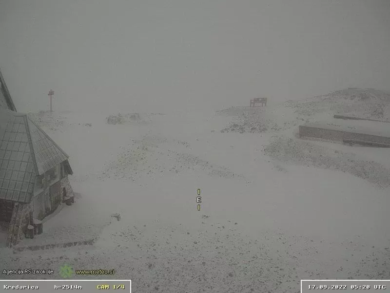 Kamere su zabilježile snijeg na slovenskom planinskom vrhu. Donijela ga je hladna fronta.