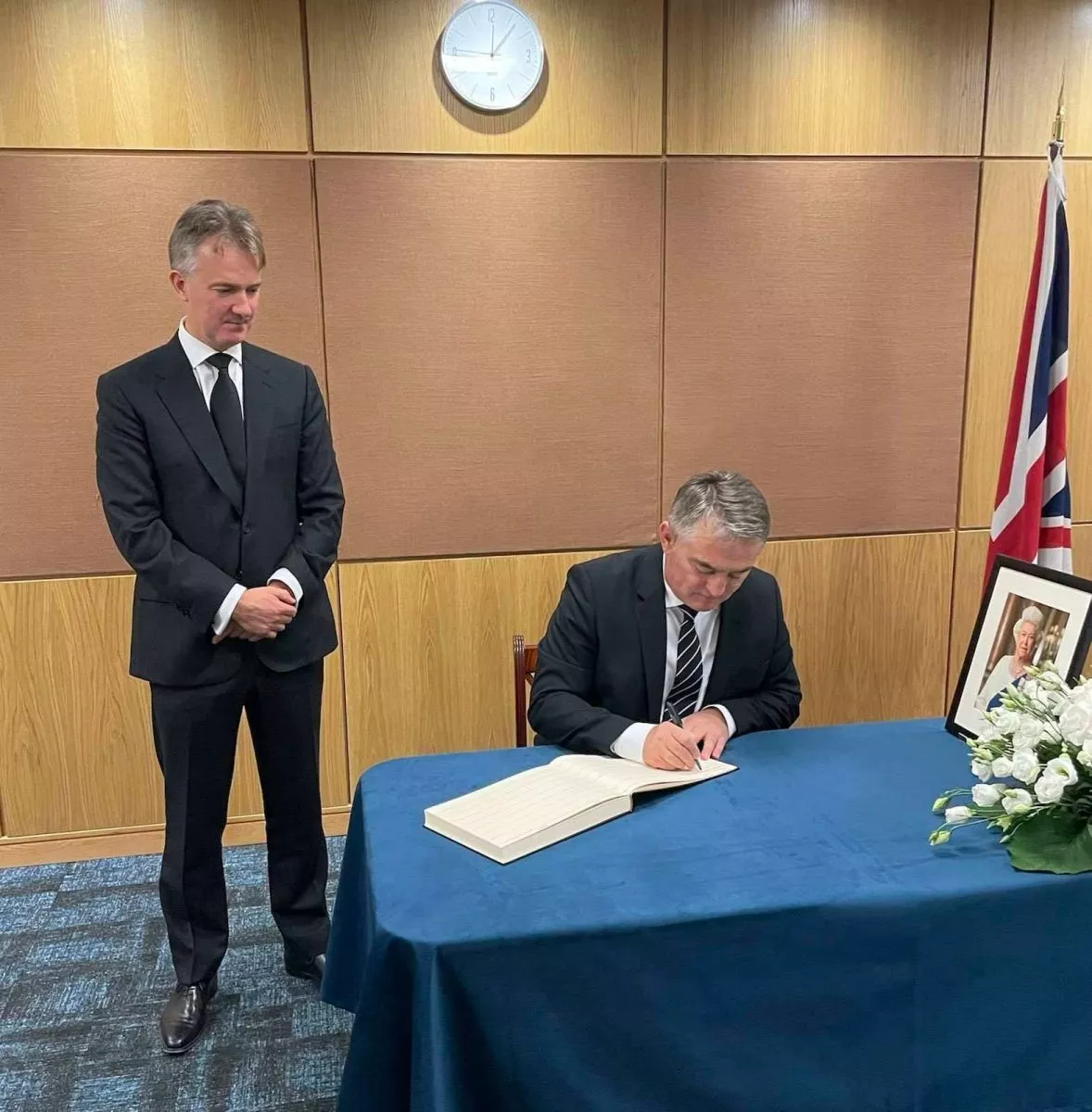 U zgradi Amabasadi Velike Britanije u Bosni i Hercegovini, član Predsjedništva Bosne i Hercegovine Željko Komšić upisao se u knjigu žalosti povodom smrti britanske kraljice Elizabete.