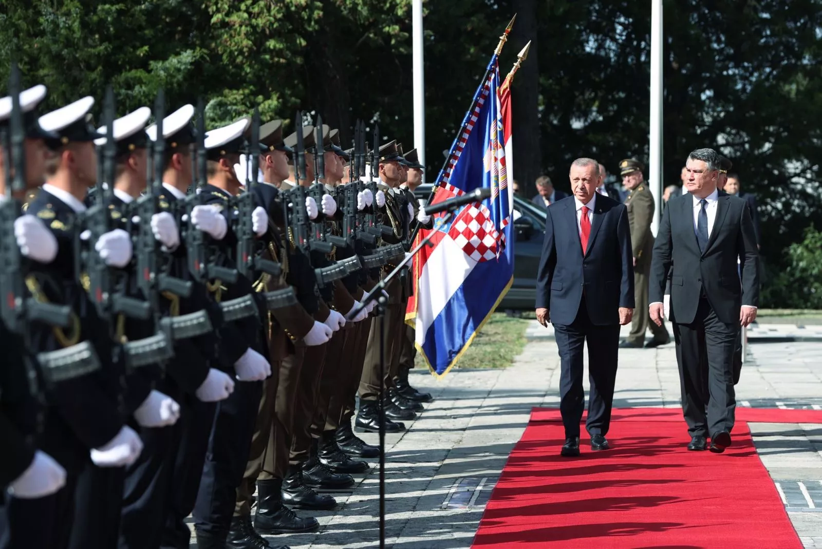Turski predsjednik Recep Tayyip Erdogan stigao je u četvrtak na Pantovčak u sklopu službene posjete Hrvatskoj na poziv predsjednika Zorana Milanovića.