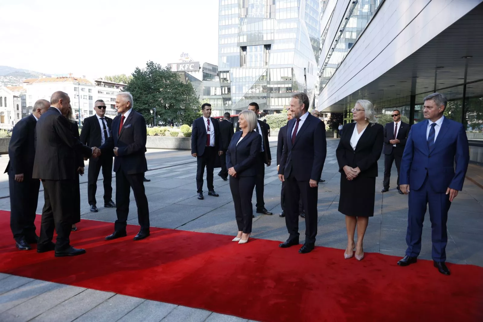 Članovi kolegija Predstavničkog doma i Doma naroda Parlamentarne skupštine Bosne i Hercegovine dočekali su delegaciju na čelu s Erdoganom.