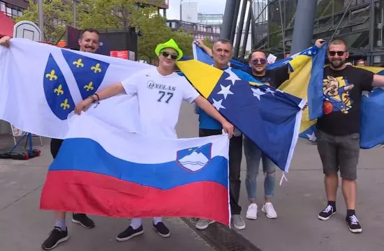 “Došli smo iz Minhena i nema veze odakle smo svi. Nema veze ko će pobijediti, biće nama dobro”, kaže navijač Slovenije, a Bosanci uzvraćaju “To on govori iz straha, hahaha…”