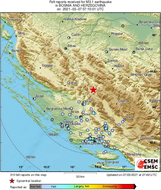 Hrvatski seizmolozi javljaju da je riječ o potresu magnitude 3,2 prema Rihteru te da je epicentar kod Ljubinja u BiH.