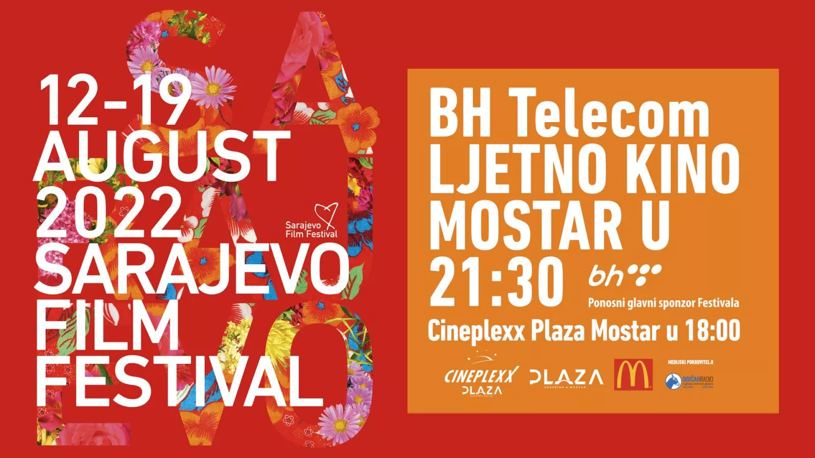 (Patria) - Sarajevo Film Festival treću godinu dolazi u Mostar. Filmovi iz programa 28. Sarajevo Film Festivala bit će prikazivani u dva termina: u BH Telecom Ljetnom kinu Mostar (plato Plaza Centra) u 21.30 sati te u kinu Cineplexx Plaza Mostar s početkom u 18 sati.