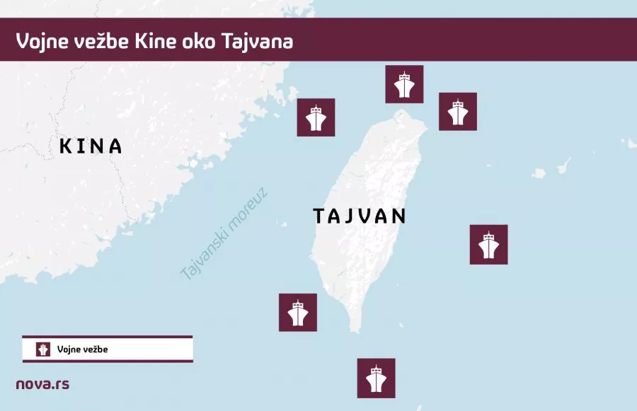 Kineska vojska je saopćila da će izvesti seriju vojnih vežbi. Objava u kineskim državnim medijima ponudila je koordinate za pet morskih područja koja okružuju Tajvan, od kojih se tri preklapaju sa oblastima za koje Tajvan kaže da su njegove teritorijalne vode.