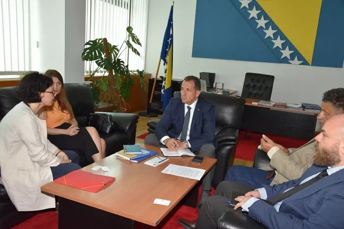 SARAJEVO, (Patria) - Ministar sigurnosti BiH Selmo Cikotić je primio delegaciju Auschwitz Instituta na čelu sa direktoricom Programa za mediteransku regiju Gabrielom Ghindea, s kojima je razgovarao o mogućnosti saradnje na izgradnji državnog kapaciteta za prevenciju zločina kroz specijalizirane programe obrazovanja, obuke i tehničke pomoći.