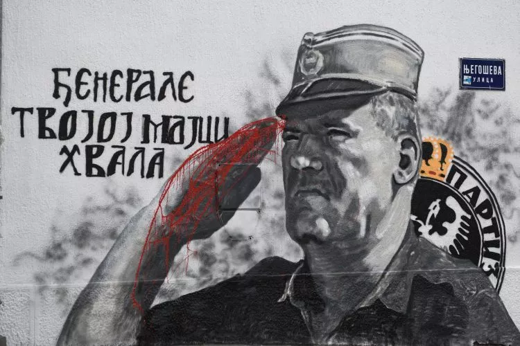 Mural sa likom Ratka Mladića osvanuo je 23. jula prošle godine u Beogradu. Već 24. jula crvenom bojom išvrljana je ruka kojom Mladić salutira.