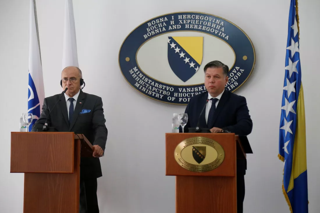 SARAJEVO, (Patria) - Zamjenik ministrice vanjskih poslova Bosne i Hercegovine Josip Brkić sastao se danas u Sarajevu s ministrom vanjskih poslova Republike Poljske Zbigniewom Rauom, koji u BiH boravi i u svojstvu predsjedavajućeg Organizacije za evropsku sigurnost i saradnju (OSCE).