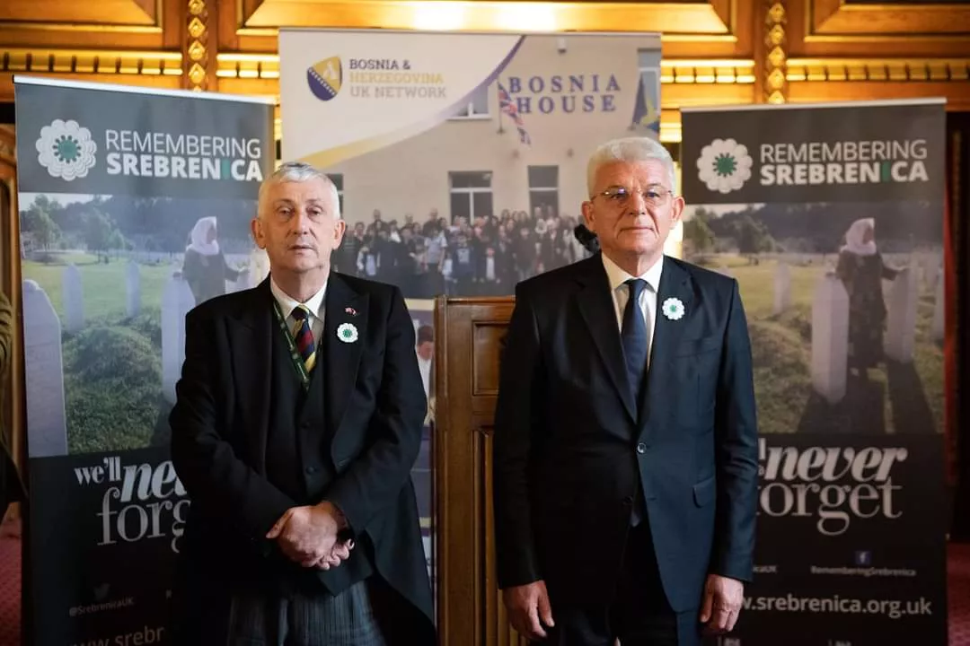Britanije i Sjeverne Irske Lindsayjem Hoyleom i Sveparlamentarnom grupom za Bosnu i Hercegovinu, kojima je zahvalio na na organizaciji komemoracije u povodu 27. godišnjice genocida u Srebrenici, kao i na kontinuiranoj podršci Ujedinjenog Kraljevstva Velike Britanije i Sjeverne Irske borbi za istinu i pravdu.