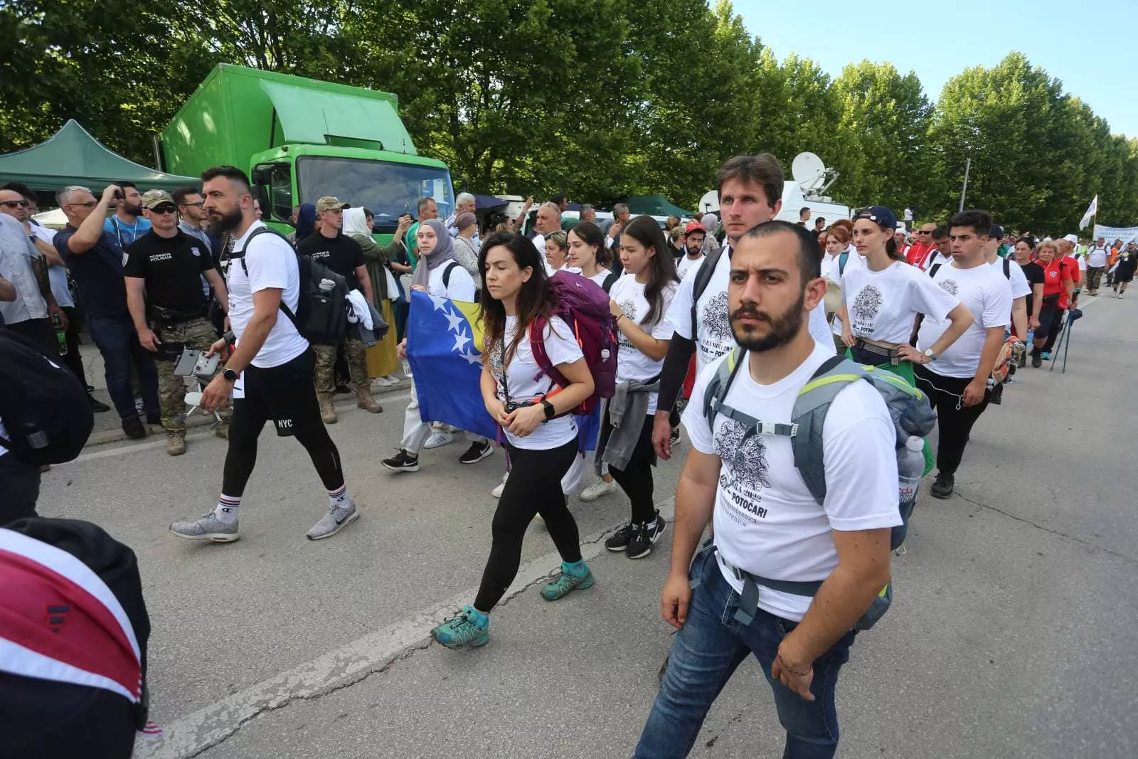 Učesnici Marša mira su prvog dana predahnuli u Liplju gdje su jučer ujutro klanjali bajram-namaz i nastavili dalje rutom prema Potočarima. U subotu popodne su stigli u kamp Mravinjci.