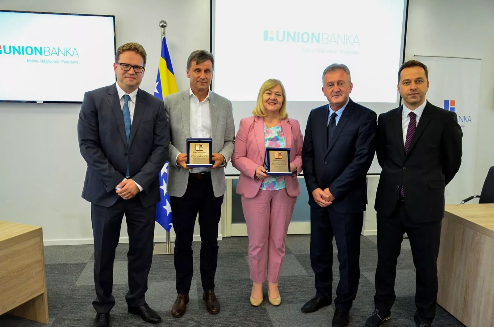 Predstavnici Uprave Banke su uručili zahvalnice premijeru Novaliću i Vladi Federacije BiH, te ministrici Milićević i Federalnom ministarstvu finansija, za kontinuiranu podršku i uspješnu saradnju u razvoju i rastu Union banke d.d. Sarajevo.