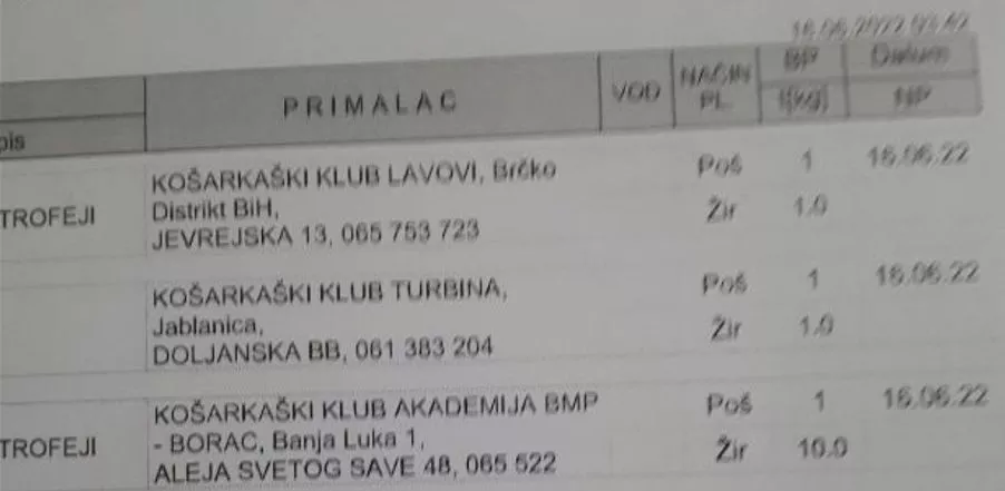 U prilogu su otpremnica i prijemni list koji potvrđuje da su medalje i pehari uredno dostavljeni KK Akademija BMP Borac, odnosno Milanu Džajiću", navode iz KS BiH.