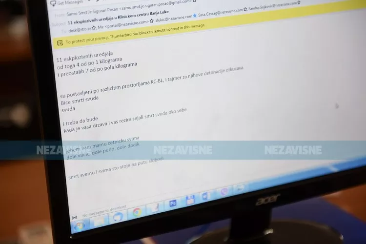. Upozoravajući mailovi stigli su i na adrese nekoliko medijskih kuća u Banjaluci.