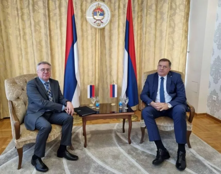 (Patria) - Član Predsjedništva BiH Milorad Dodik sastao se danas sa Igorom Kalabuhovim, ruskim ambasadorom u BiH. Nakon sastanka, poručio je da "BiH nije uvela sankcije Rusiji i da predstavnici Republike Srpske to nikada neće dopustiti."