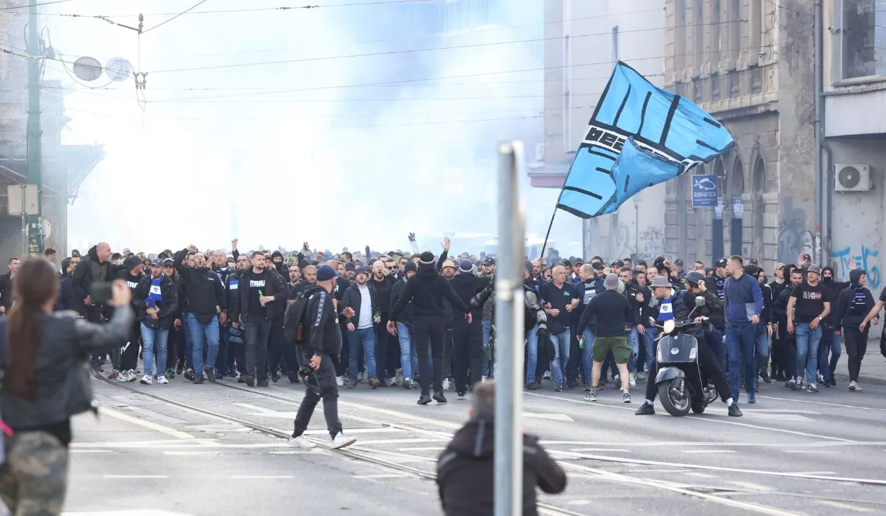 (Patria) - Najvatreniji navijači Željezničara, popularni Manijaci, okupili su se na mostu Vrbanja i u korteu krenuli prema stadionu Asim Ferhatović Hase.