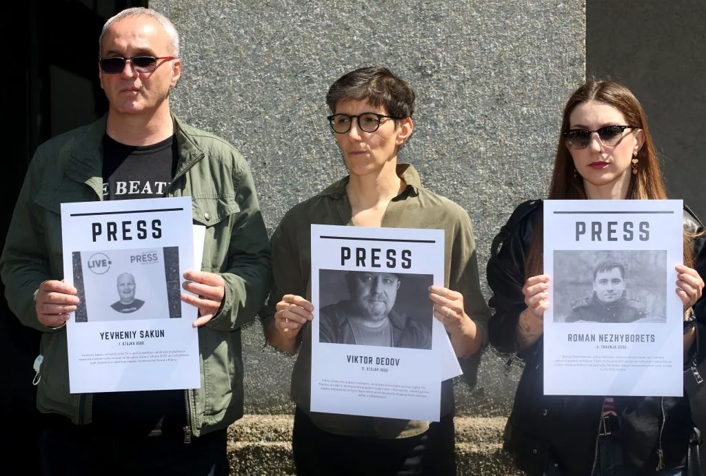 U javnoj akciji „Pet minuta do podne” ispred spomen-ploče novinarima ubijenima u antifašističkoj borbi i Domovinskom ratu koja se nalazi ispred Novinarskog doma, deset novinara istaknulo je fotografije s imenima ubijenih novinara od početka ruskog napada na Ukrajinu.
