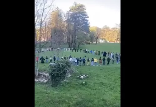 Na snimku dostavljenom portalu CdM, vidi se grupa ljudi koja u Vladičinoj bašti pjeva uglas “Veseli se srpski rode”.