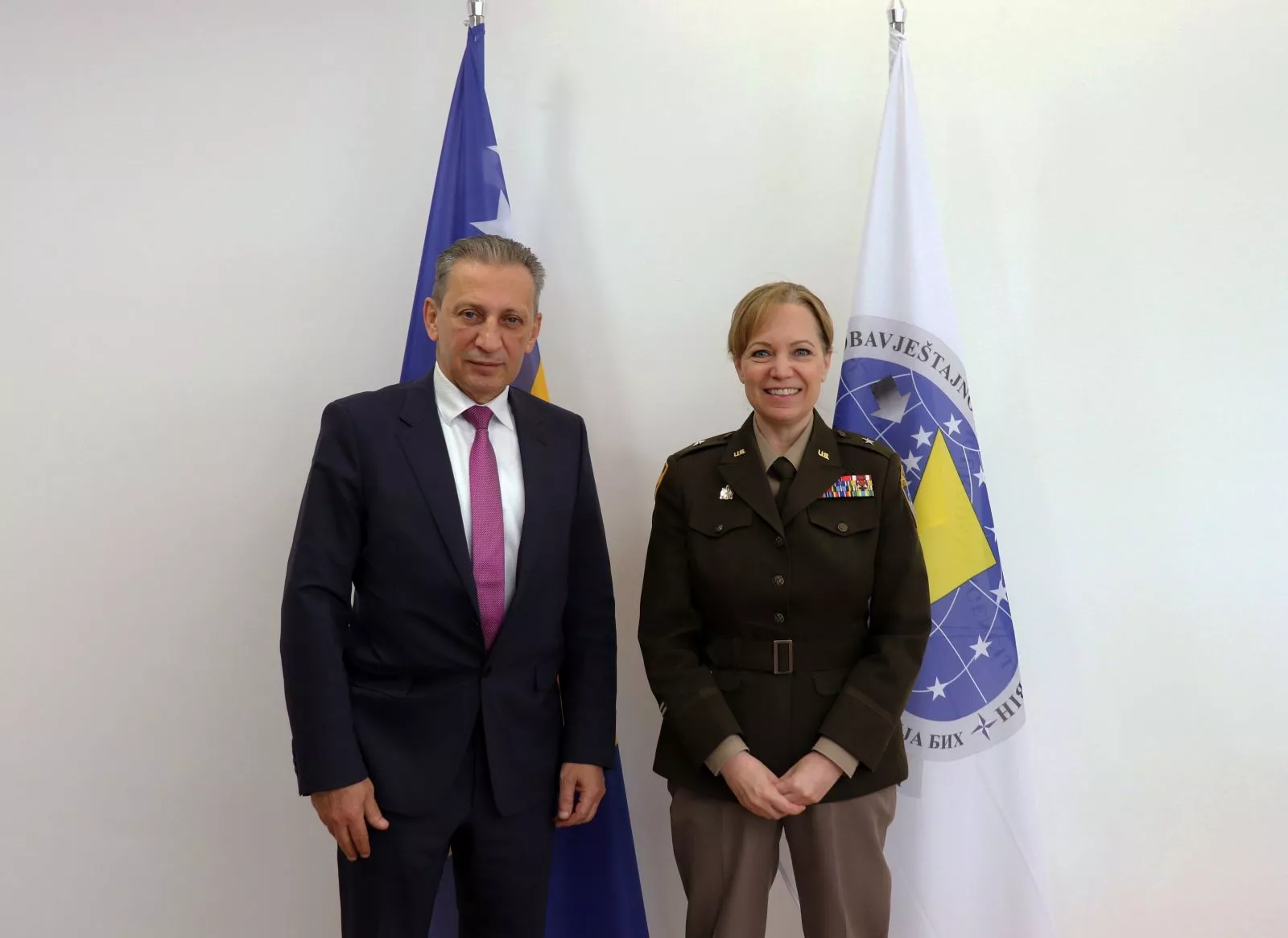 SARAJEVO, (Patria) - Komandantica NATO Štaba u Sarajevu brigadna generalica Pamela McGaha sastala se danas sa generalnim direktorom Obavještajno-sigurnosne agencije Bosne i Hercegovine Osmanom Mehmedagićem.