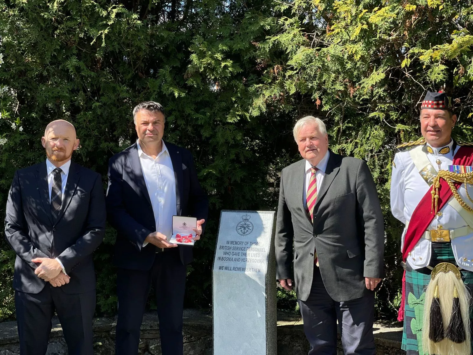 SARAJEVO, (Patria) - Muhidin Tutić dobitnik je ordena počasnog pripadnika najizvrsnijeg Reda Britanskog Carstva (Member of the Most Excellent Order of the British Empire - MBE) koji su mu, u ime kraljice Elizabete II, uručili član britanskog Parlamenta pukovnik Bob Stewart i ambasador Matt Field juče u Sarajevu.