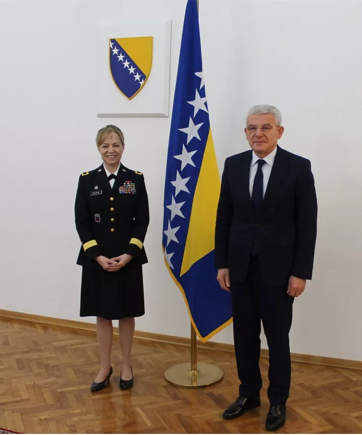 (Patria) - Predsjedavajući Predsjedništva BiH Šefik Džaferović primio komandanticu NATO štaba u BiH Pamelu McGaha. Razgovarano je o aktuelnoj sigurnosnoj situaciji u Bosni i Hercegovini, sa posebnim fokusom na utjecaj ruske invazije na Ukrajinu na sigurnost u Bosni i Hercegovini i regiji.