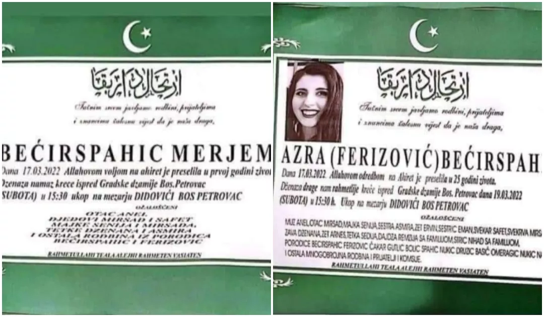 Unsko-sanski kanton, a i cijelu Bosnu i Hercegovinu potresla je vijest da su Azra i njena tek rođena beba Merjem izgubile život, 17. marta ove godine.