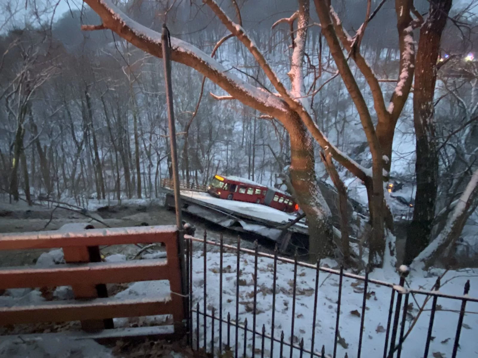 Fotografije s mjesta nesreće pokazuju da je autobus ostao visjeti na dijelu mosta koji se srušio.