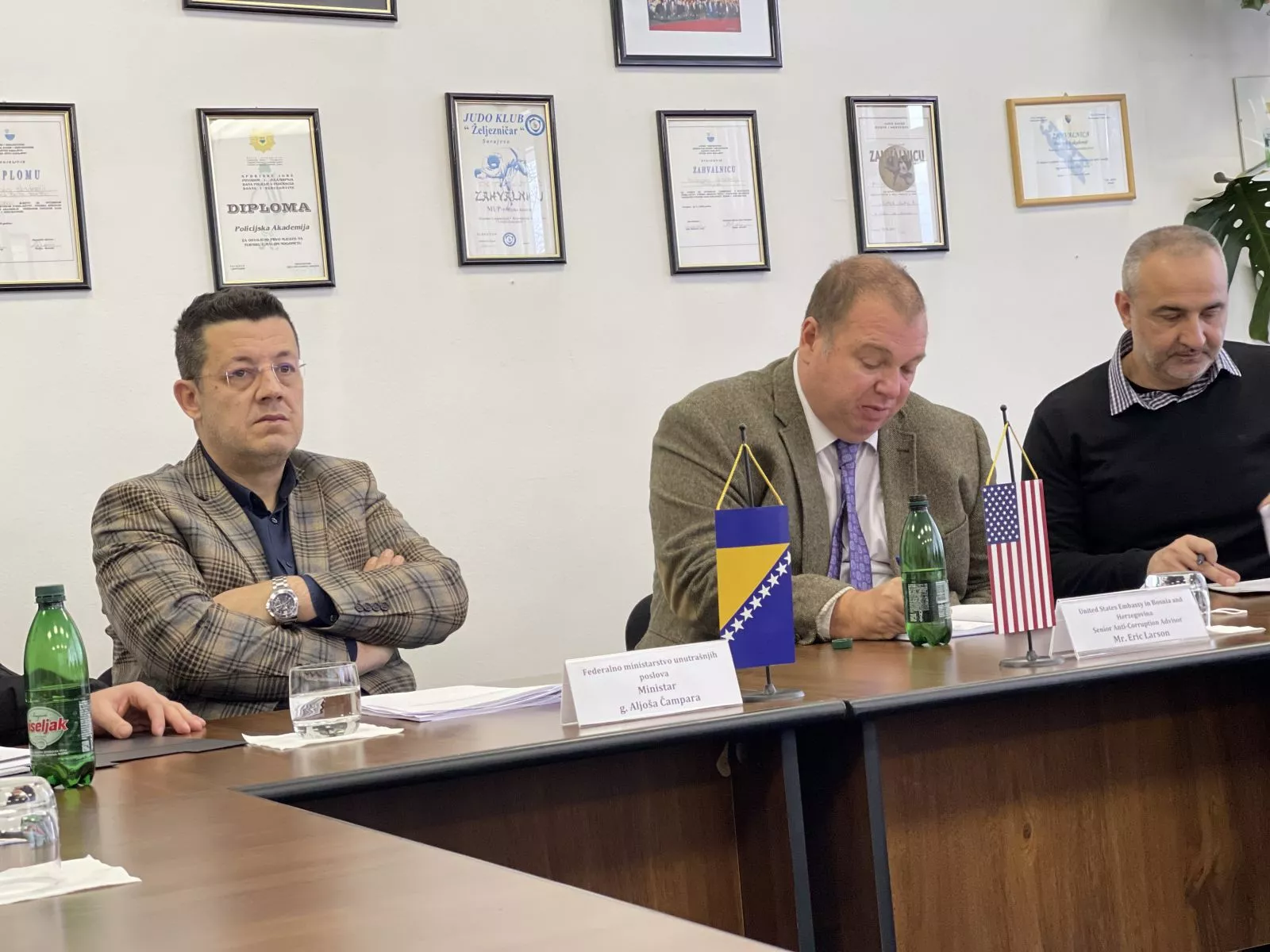 Ministar je kazao kako je FMUP zainteresiran da u saradnji s Ambasadom SAD-a u BiH pokrene programe obuke za polaznike Policijske akademije FMUP-a, ali i izradu odgovarajućih priručnika iz oblasti borbe protiv kriminala i korupcije. Larson se zahvalio federalnom ministru na dosadašnjoj saradnji poručujući kako je FMUP dugogodišnji partner Ambasade SAD-a u BiH. Viši savjetnik u Ambasadi SAD-a u BiH izrazio je želju da se obrati polaznicima MUP-a Zeničko-dobojskog kantona (ZDK), a koji će 24. januara 2022. godine započeti obuku u Policijskoj akademiji FMUP-a, te održi prezentaciju na temu borbe protiv kriminala i korupcije.