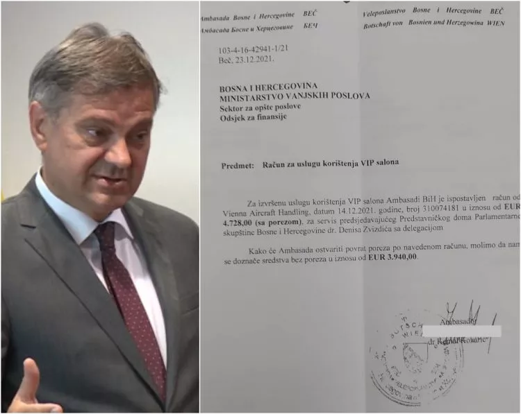 (Patria) - Ambasada Bosne i Hercegovine u Austriji zatražila je refundaciju troškova za korištenje VIP salona na aerodromu u Beču za potrebe predsjedavajućeg Predstavničkog doma Parlamentarne skupštine Bosne i Hercegovine Denisa Zvizdića.