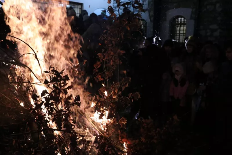 Badnjak je tradicionalno zapaljen u prisustvu vjernika, a posebno djece kojima je ovo poseban događaj.